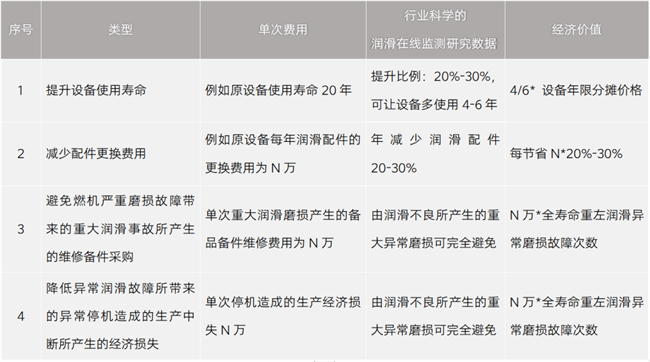 避免燃机严重磨损故障带来的重大润滑����� �������Ƴ������������ �������Ƴ������������ �������Ƴ������������ �������Ƴ�������事故所产生的维修备件采购,降低异常润滑故障所带����� �������Ƴ������������ �������Ƴ������������ �������Ƴ������������ �������Ƴ�������来的异常停机造成的生产中断所产生的经济损失����� �������Ƴ������������ �������Ƴ����������� �������Ƴ������������ �������Ƴ�������。