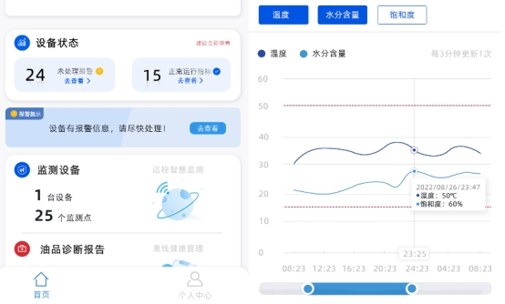■ 对监测到的数据进����� �������Ƴ������������ �������Ƴ������������ �������Ƴ������������ �������Ƴ�������行分析,检测油品乳化、粘度超标、齿轮异常磨����� �������Ƴ������������ �������Ƴ����������� �������Ƴ������������ �������Ƴ�������损等故障,并进行分级预警。