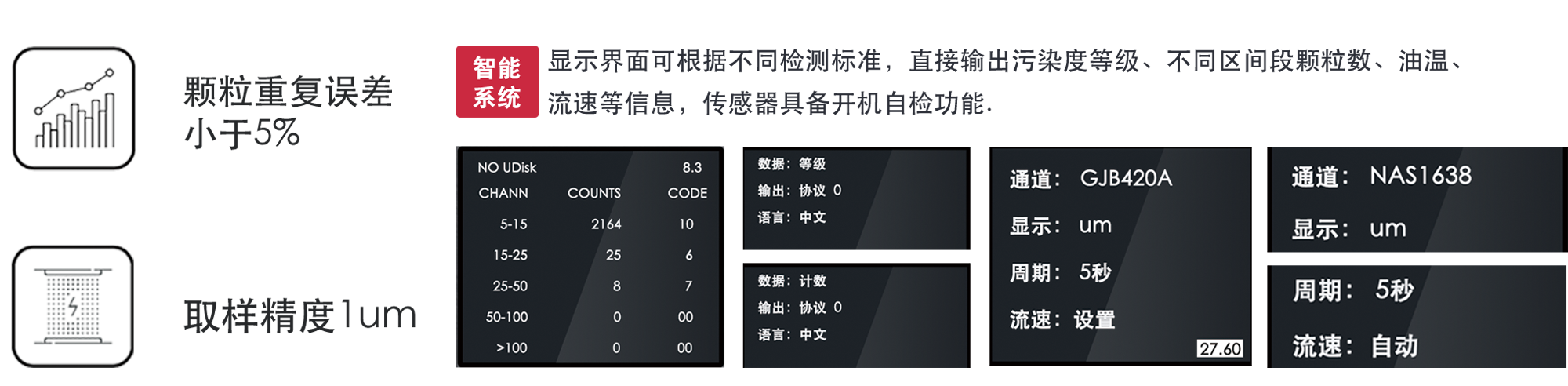 ±0.5个污染度等级(典型值) | GJB420A-96 GJB420B-06 NAS1638 ISO4406等 |